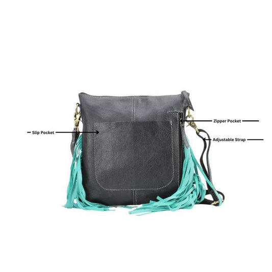 Hair on Hide Top Zip Fringe Crossbody Bag