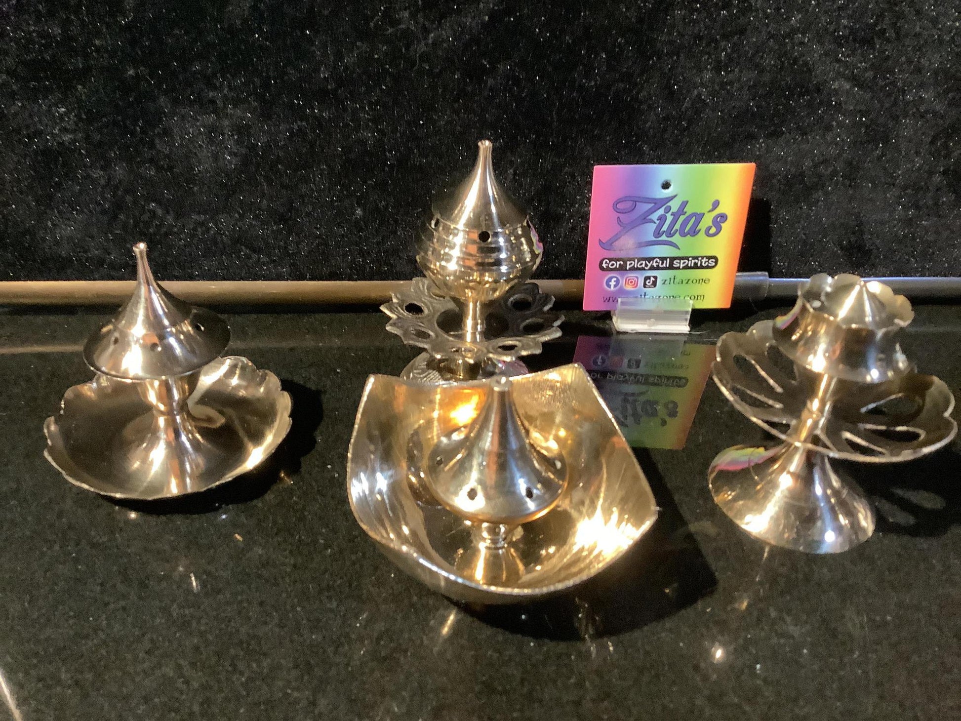 A different type of incense holder, metallic lamps which are stylish and good looking. This is an incense holder which almost come in use on a daily basis. This is made of brass and has an antique golden look.