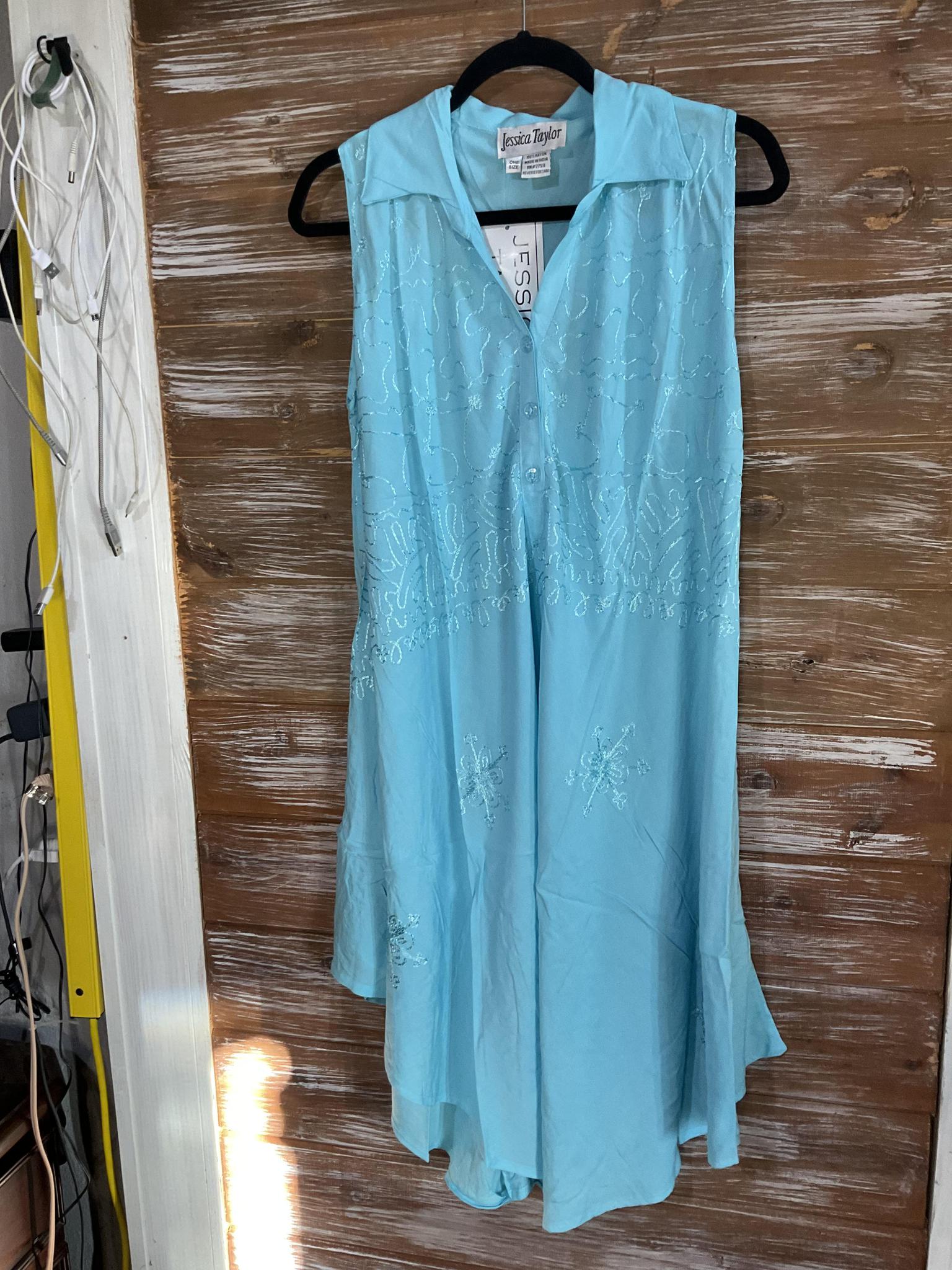 Easy care for rayon in solid color with button down collar. Casual just loose or dress it up with a belt. Pockets and a line design.