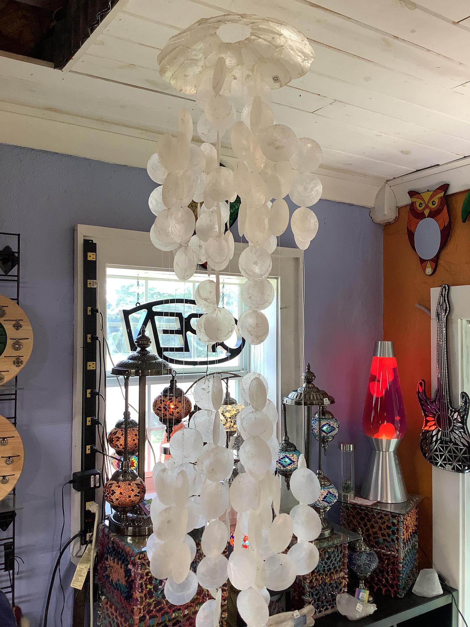 Capiz are shells found in a province in the Philippines called Capiz. These flat, semi-transparent shells with a pearlescent appearance are edible but valued more for the shells. Capiz shells have been used for thousands of years as a glass substitute because of their durability and translucence.